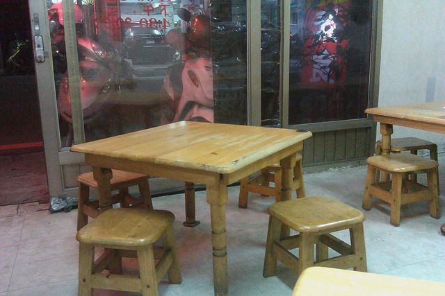 店家座位都是這種矮板凳、矮桌椅 ↓