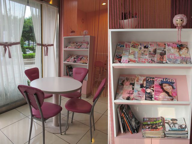 書報雜誌區,一旁窗廉也打上粉紅蝴蝶結..好美唷!