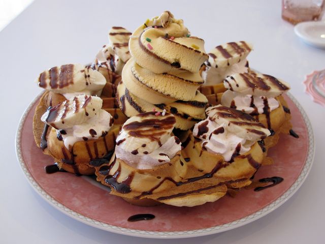 這鬆餅烤的酥酥脆脆口感札實搭著冰淇淋一起吃,超好吃~