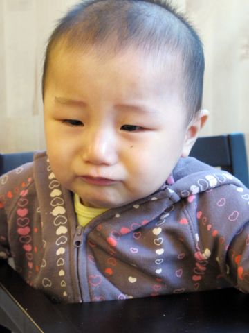 繼續哭鬧的他,於是品妹只好先餵他喝牛奶讓他閉嘴...(喂…沒禮貌~XD