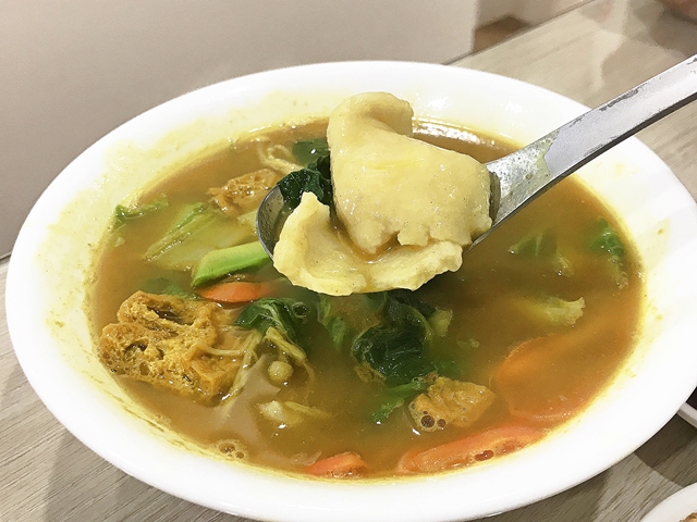 咖哩麵疙瘩,咖哩的香氣濃郁,麵疙瘩口感很Q,湯裡的蔬菜很多,湯頭部分也是順口好喝。